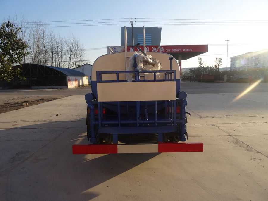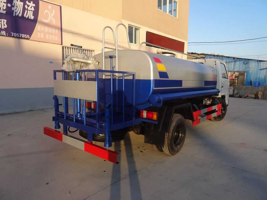 改裝配置:罐體采用4mm厚武鋼專用容積板制作,實際容積5立方,罐內(nèi)隔板具有防波作用,以減低汽車行駛時罐體液體的沖擊。泵 進泵出,消防栓接口,前沖、后灑、側噴、后工作平臺帶綠化水炮,垂直吸程≧7米,灑水寬度≧14-16米,射程≧20-25米,引水時 間<5min,流量90m3/h。自流閥、濾網(wǎng)、帶自吸自排功能。兩根等長輸水管,金屬漆,其余標配。可加裝藥盤、氣動控制閥、噴藥設備、非車帶泵動力等。