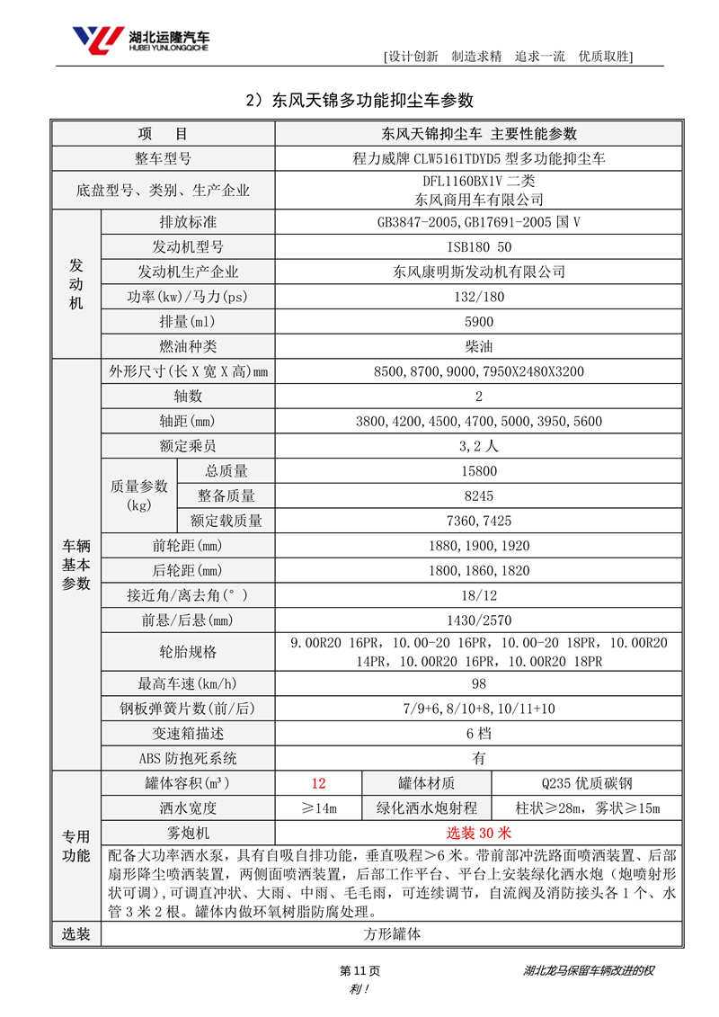 東風天錦抑塵車,12噸圓罐30米-60米霧炮車
