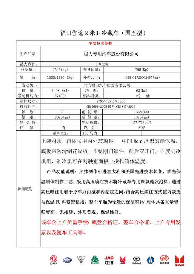 福田伽途2米8冷藏車