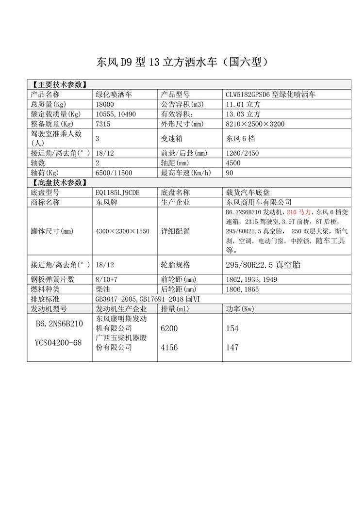 東風D9型13立方灑水車